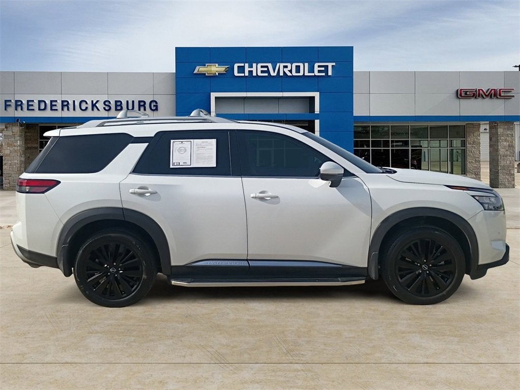 CARFAX One-Owner. Clean CARFAX. Everest White Pearl Tricoat 2025 Nissan Pathfinder Platinum Platinum FWD 9-Speed Automatic 3.5L V6 DOHCAT FREDERICKSBURG CHEVROLET BUICK GMC , WHERE YOU WILL BE TREATED LIKE FAMILY! GUARANTEED APPROVAL ON ALL VEHICLES NEW AND USED! COME IN TODAY AND DRIVE OUT IN THE VEHICLE OF YOUR DREAMS! GREAT PEOPLE, BETTER PRICES!!ONLY AT FREDERICKSBURG CHEVROLET BUICK GMC DO YOU GET A 10 YEAR 100K MILE WARRANTY ON ALL CERTIFIED PRE-OWNED VEHICLES! 20/27 City/Highway MPGCertification Program Details * Towing - no out of pocket for customers towed to our dealership if located within 30 miles* Lockout assistance * Jump start assistance * Fuel and fluid delivery * Flat tire changes * Available 365 days/year * Up to $100 maximum coverage per incident * Every certified pre-owned vehicle has passed a detailed 104 point inspection for our certification process * This is offered at Chevrolet Buick GMC of Fredericksburg to give you peace of mind for 10 years or 100,000 miles * See dealer for Full Details * Not all vehicles qualify * Why shop used when you can shop certified * Roll through the beautiful Texas hill country and shop at Chevrolet Buick GMC of Fredericksburg!